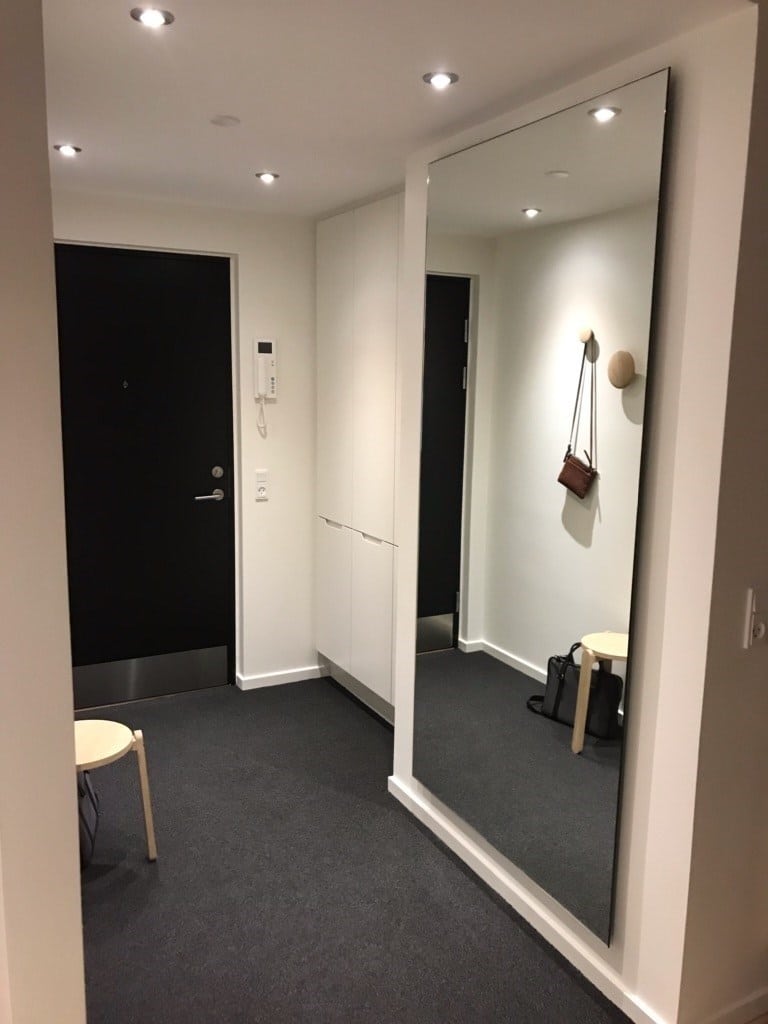 Et spejl kan gøre hele rummet større. Det kan både limes op på væggen, eller monteres med beslag så det får en svævende effekt.